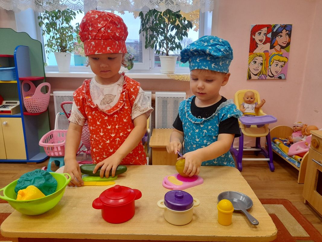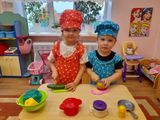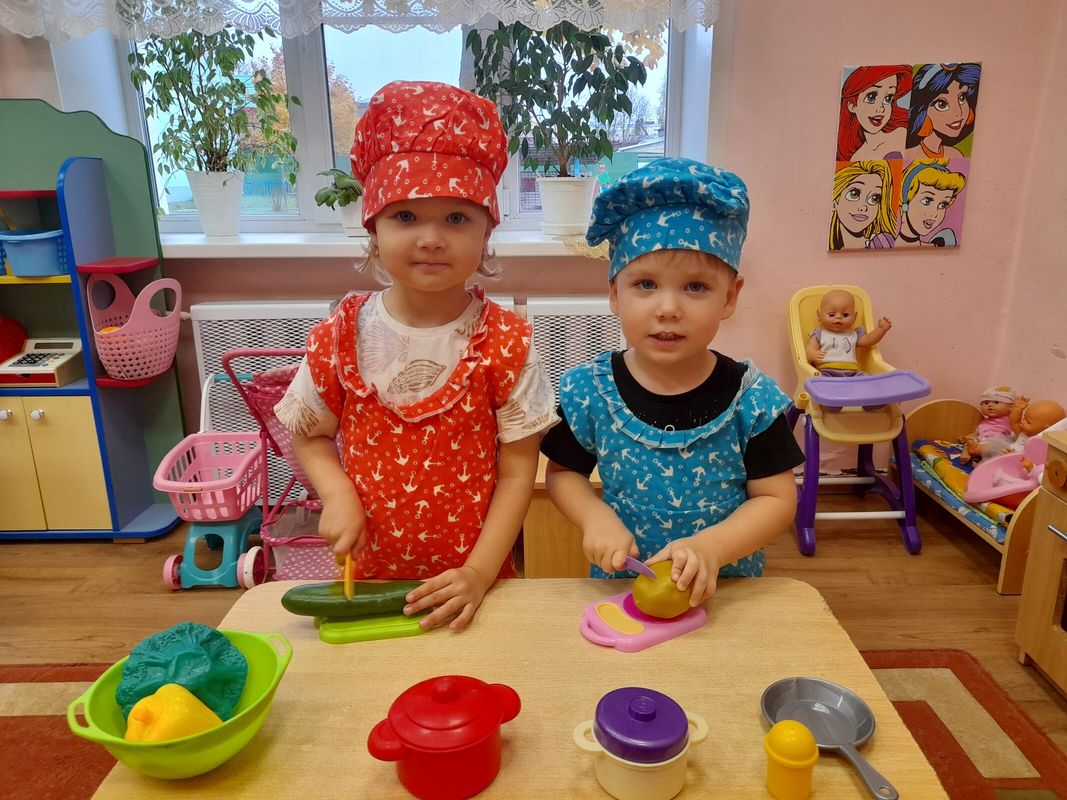 Младшая группа играла в с/р игру "Готовим обед", познакомились с картиной "Утро"